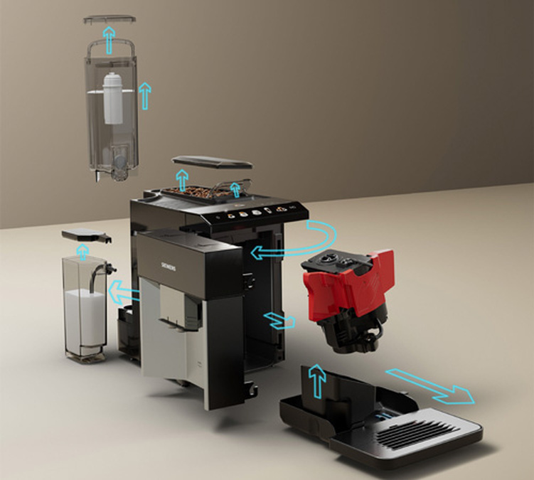 Der Kaffeevollautomat EQ.500 von Siemens bietet dank seines IAroma-Systems eine hochwertige Extraktion. Dabei arbeiten vier Technologien synergetisch zusammen, um das Aroma Ihrer Kaffeebohnen voll zur Entfaltung zu bringen: eine Keramik-Kaffeemühle, ein exklusives Heizsystem, optimaler Druck der Wasserpumpe und eine herausnehmbare Brühgruppe.