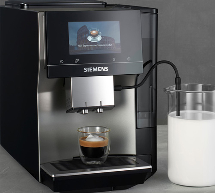 Die Serie EQ.700 von Siemens bietet ein sehr modernes Design in der trendigen Farbe Anthrazit. Diese Kaffeemaschine von Siemens ist aus hochwertigen Materialien gefertigt und besticht durch ihr rundum ästhetisches Design. Sie können sie aus jedem Blickwinkel betrachten, nichts wurde dem Zufall überlassen, sie sieht einfach umwerfend aus und hebt sich von der Masse ab.