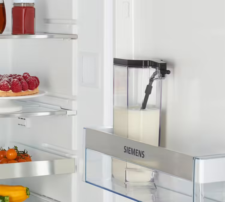 Entdecken Sie die EQ.500 TQ518RX3 Integral von Siemens, die mit einem One-Touch-System und einer integrierten Milchkaraffe für eine einfache Bedienung ausgestattet ist. Die Kaffeemaschine ist aus robusten Materialien gefertigt und verfügt über ein modernes Design mit berührungsempfindlichen Piktogrammen und einer Front aus Edelstahl. Mit diesem Kaffeevollautomaten können Sie zwei Milchgetränke gleichzeitig zubereiten und dank des IAroma-Systems ein perfektes Ergebnis in der Tasse erzielen. Diese Siemens Kaffeemaschine ist über Wifi verbunden und kann aus der Ferne gesteuert werden. Perfekte Verschmelzung von Technologie und Qualität.