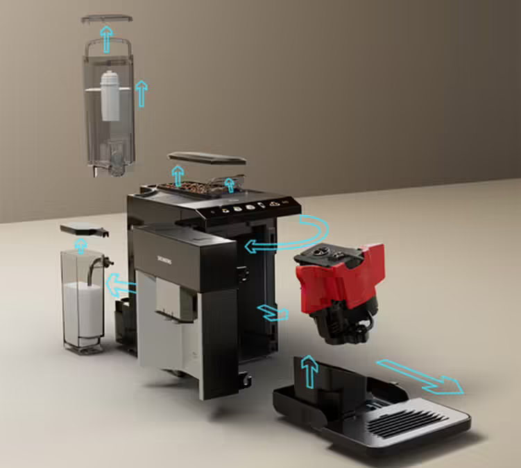 Dieser Kaffeevollautomat Siemens EQ.500 bietet eine perfekte Wartungsfreundlichkeit.