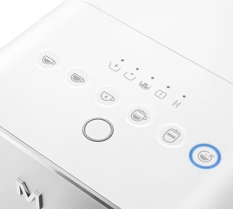 Der Kaffeevollautomat von Smeg ist so konzipiert, dass er einen einfachen Bedienkomfort bietet. Seine Tasten befinden sich auf der Oberseite der Maschine und ermöglichen eine praktische und einfache Bedienung. Sie bietet zwei verschiedene Menüs, wobei jedes Menü mit einer bestimmten Taste verknüpft ist. Die LEDs ändern ihre Farbe, um das gewählte Menü anzuzeigen: weiß für das erste Menü und orange für das zweite.