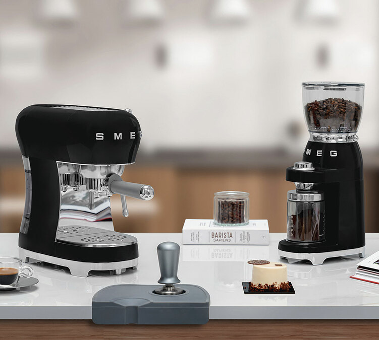 Die SMEG ECF02BLEU in schwarz ersetzt das Modell ECF01.