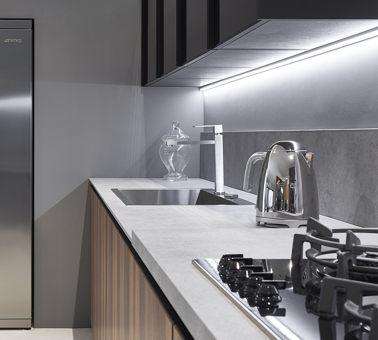 Eine stilvolle und gut ausgestattete Küche mit dem Wasserkocher von SMEG