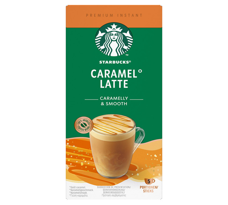Sind Sie ein Liebhaber von Starbucks-Kaffee und einfach zuzubereitendem Kaffee? Mit dem löslichen Kaffee Starbucks Caramel Latte erleben Sie ein klassisches Getränk, 100 % Arabica mit Milch, aber voller Leckereien mit Karamellnoten und einem Schaum zum Niederknien. Verpackung: 115 g Packung mit 5 Sticks.