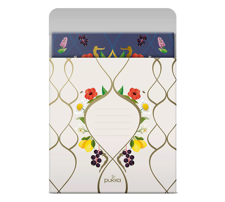 Gönne dir einen Moment des Wohlbefindens, indem du dir einen Früchtetee/Kräutertee aus biologischem Anbau von Pukka zubereitest. Jeder Teebeutel von Pukka wird ohne Plastik hergestellt und ist in einer recycelbaren Einzelverpackung verpackt. Andere Teesortiments der Marke bieten die gleiche Verpackung.