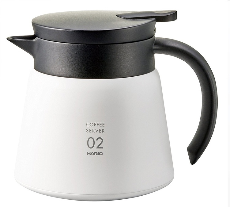 Der Thermoskanne V60 von Hario ist doppelwandig und aus hochwertigem Edelstahl, für eine ausgezeichnete Warmhaltung (90 Minuten).